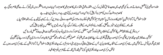 | RAWALPINDI, December 20: The TNFJ nominated conveners to oversee the programs of the "Aalmi Ashrae Ajre Rasalaat" from 1-10 Rajab Al Murajab | ||