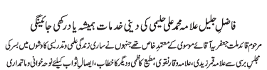 RAWALPINDI, December 21: Services rendered by Allama Mohammad Ali Haleemi will always be remembered |
