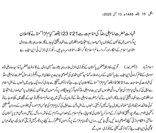 TNFJ UK    ASR NEWS    ENGLISH NEWS    URDU NEWS    JOIN TNFJ    ANNOUNCEMENTS    QUAID'S MESSAGES    CONTACT TNFJ UK