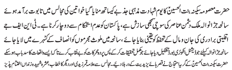 ISLAMABAD, August 25: The martyrdom anniversary of Sakina Bintal Hussain (SA) was commemorated with great religious zeal and reverence |