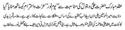 | RAWALPINDI, May 31: The Youme Wasaal of the pious companion of the Holy Prophet Hazrat AbZar will be commemorated today as the "Youme Sahabeyat" | ||