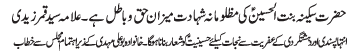 RAWALPINDI, August 8: Shahadat of Hazrat Sakina (SA) is a dividing line between truth and falsehood - Qamar Zaidi |
