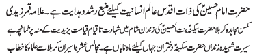 RAWALPINDI, August 9: Hazrat Imam Hussain (AS) is the source of guidance for whole of humanity - Qamar Zaidi | ||