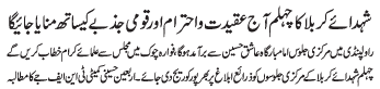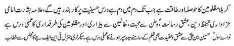 ISLAMABAD, July 27: Those who come in the way of Hussainiat are always defeated - TNFJ | ||