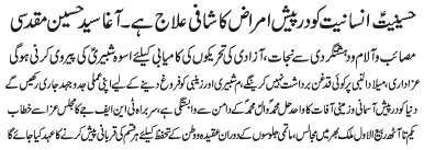 RAWALPINDI, August 26: Hussainiat is the solution to the problems faced by humanity - Hussain Muqadasi | ||