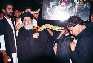 RAWALPINDI, September 2: The Youm-e-Shahadat of Amirul Momineen Hazrat Ali Ibne Abi Talib (A.S.) was observed throughout the country with religious spirit, devotion and respect on Wednesday culminating the programmes of “International Ayyam-e-Aza”. Taboot Sher-e-Khuda (A.S.) was taken out from all small and big cities, towns and villages of the country while ulema, waizeen and zakireen addressing Majalis-e-Aza held at mosques and Imambargahs highlighted the seerat of Amirul Momineen Hazrat Ali (A.S.). The main Taboot procession in Rawalpindi was taken out from Aza Khana Mubarik Bano Mohanpura under the auspices of Nayyar Hussain Zaidi. The Quaid-i-Millat Jafariya Agha Syed Hamid Ali Shah Moosavi participated in the main procession, offered Ziarat of Tubarrukat and took part in Matamdari. The office-bearers of TNFJ District Ayyam-e-Aza Committee were leading the procession. Talking to media representatives and Matmi Azadars on the occasion, Agha Moosavi said that after the Khatmi Martabat (SAAW), Hazrat Ali Ibne Abi Talib (A.S.) is the only personality on which the whole Ummah is united. Therefore, he added, Muslim Ummah can control mutual differences, anarchy and biases by making his personality as the central point of unity as by attaching with the Daman of Hiader-e-Karrar (A.S.) we can not only root out terrorism and internal evils but could also overpower the international colonial powers.