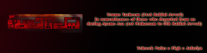 RAWALPINDI, February 26: In accordance with the Quaid e Millat e Jafariya Agha Syed Hamid Ali Shah Mousavi, Youm e Tarheem was observed throughout the country. In the sermons of Jumma prayers high attribute was presented to the martyred and deceased who died in the month of Muharram and Safar. The Ulluma and Zakireen highlighted the philosophy of life and death. While addressing to the majlis at Qasr e Abu Talib Syed Qamar Haider Zaidi said that Allah Almighty has created everything in this universe for a specific reason. Allah has created Human beings as the best of all His creations and declares in the Quran “I have created life and death so that I can test who is the most virtuous amongst you”. He stated that prophets, messengers and the chosen people of Allah are appointed by Him to guide humans, direct them towards good and steer them away from evil. He stressed that striving for the achievement of virtue is worship while offering one’s life on this path is equivalent to martyrdom. He made it clear that committing evil, barbarity and suicide are strictly forbidden in Islamic Shariah. While addressing the Friday sermon at Jamia Masjid Khadeeja tul Kubra Federal Area Islamabad, district president TNFJ Basharat Hussain Imami said that our beloved homeland Pakistan has not only been the victim of terrorism but has also been engulfed in problems from all sides for a long time. It is because of our perpetual enemy who has never accepted Pakistan as a sovereign state, and who never misses any chance to undermine the position of Pakistan. He also quoted the saying of the Quaid e Millat e Jafariya Agha Syed Hamid Ali Shah Mousavi that it is just because of its Islamic Ideology and being an atomic power that Pakistan is being targeted. Allama Imami recited the Fatihah Khani for the salvation of all the deceased and martyred. On the same occasion, the actions taken by the governments of Tunisia, Kurdistan, Libya and Egypt to brutally attack their innocent civilians were highly condemned. Moreover it was said in the resolution that suppressing public protests is not the solution to the problems. If those in power had tried to solve the problems their citizens, this kind of situation would not have been brought about and other leaders should learn a lesson from it. It was also made clear in the presented resolution that public protest in the different Islamic States is evidence that governments failed to satisfy the fundamental rights of their subjects. The same situation is being shifted to the other countries day by day which is an alarming sign for the rest of the Muslim leaders. It was warned that these Muslim leaders should get rid of evil powers and should listen to their masses or else they will have to face the consequences. In the resolution, the bombing made by the Libyan army on innocent people were also condemned and it was demanded that it should be stopped immediately. Moreover, it was also pledged that for the cause of Millat e Jafariya any course of action advised by the Quaid e Millat e Jafariya Agha Syed Hamid Ali Shah Mousavi will be accepted. |