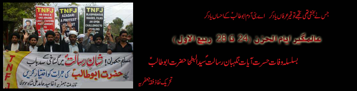 RAWALPINDI, February 27: The Quaid-i-Millat Jafariya Agha Syed Hamid Ali Shah Moosavi has said those who commit blasphemy could be stopped and every conspiracy and mischief against Islam, Mashaheer-e-Islam and Shariat could be thwarted through practical following of courage and seerat of Abu Talib (A.S.)