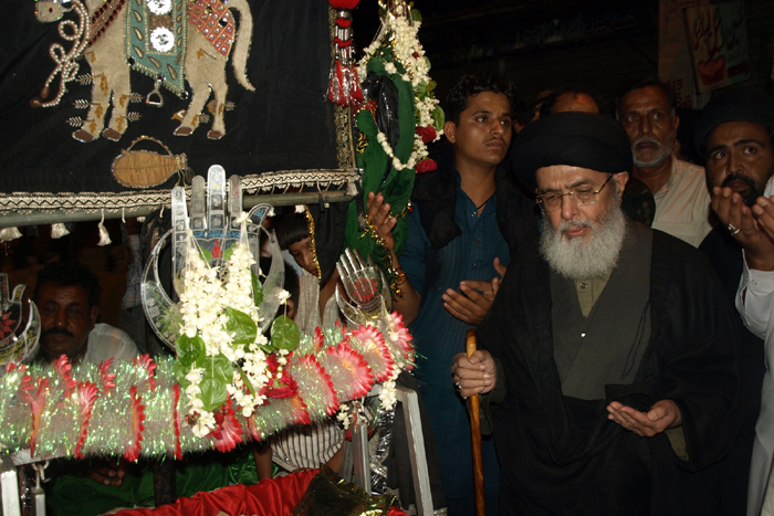 Due to the biased policy of Hanif Khalid, the editor of the daily Jang Rawalpindi, as a protest this news in not for publish in the daily Jang Rawalpindi The martyrdom anniversary of the leader of the faithful Hazrat Ali Ibne Abi Talib (PBUH) was observed throughout the country with religious spirit, devotion and respect If all institutions submit to the constitution then only the enemies of the religion and the motherland can be empowered; the bloody incidents in Syria are aimed at paving way for Israeli supremacy in the Arab world, to create differences amongst Arab and Ajam and to cause harm to the Muslim honour; the massacre of Muslims in Burma is a part of the colonial agenda; the teachings of Ali al Murtaza must be followed to provide justice and fair-play - Quaid e Millat Jafariya Agha Syed Hamid Ali Shah Moosavi participated in the main Matami procession and talks to Media RAWALPINDI, August 11: The martyrdom anniversary of the leader of the faithful Hazrat Ali Ibne Abi Talib (PBUH) was observed throughout the country with religious spirit, devotion and respect on Friday culminating the programmes of “International Days of Mourning”. The replica of the coffin of the lion of Allah (PBUH) was taken out from all small and big cities, towns and villages of the country while Ulema, Waizeen and Zakireen addressing Majalis-e-Aza held at mosques and Imam Bargahs highlighted the pious character of the leader of the faithful Hazrat Ali (PBUH). The main procession of the coffin of Imam (PBUH) in the twin cities of Rawalpindi and Islamabad was taken out here from Mohanpura in which the Quaid-i-Millat Jafariya Agha Syed Hamid Ali Shah Moosavi participated, offered Ziarat of Tubarrukat and took part in Matam dari. He was accompanied by Ulema and other elite while law enforcing agencies and hundreds of volunteers from Mukhtar Force, Ibrahim Scouts had made fool-proof security arrangements. Talking to media representatives and Matmi Azadars on the occasion, Agha Moosavi said that the leader of the faithfull Hazrat Ali Inbe Abi Talib (PBUH) enjoys the singular honour that he was born in Khana-e-Ka’aba and kissed martyrdom in the mosque and there is a saying of the last Holy Prophet of Allah (PBUH & HHP) that Allah laced my brother Ali (PBUH) with such qualities and attributes that all human beings could not count them even if they get together. Answering a question, he expressed grave concern over the increasing tension amongst the national institutions and said if all institutions submit to the constitution instead of trying to force the constitution to submit to them only then we can overpower the enemies of the religion and the motherland otherwise the difficulties would increase tremendously. He said the constitutional understanding amongst the institutions along with political understanding the best solution to the problems. The TNFJ chief said that according to the tradition of the Holy Prophet, Ali (PBUH) is the best decision maker therefore we would have to hold the teachings of Ali al Murtaza to provide justice and fair-play. He said the master of the universe, Imam Ali Ibne Abi Talib (PBUH) had stated that if I am given the government to rule all over the world and asked to snatch the Rizq from an ant’s mouth, by God, Ali (PBUH) will not do this. If asked I will make decision for the followers of Torah from Torah, for the followers of Zaboor from Zaboor, for the followers of Injeel from Injeel, and for the followers of the Quran from Quran. He made it clear that justice is the negation of biasness, wherever there will be bias, there will be no justice. Therefore, the government and all institutions should make decisions keeping biases aside; the government should ensure the implementation of the resolutions approved by the National Assembly so as to root out terrorism and realise the dream of peace in the country. Agha Moosavi asked all the followers of Islam to pay condolences on the martyrdom anniversary of the vicegerent of the Holy Prophet, Imam Ali (PBUH) and according to one of the saying of the master of the universe (PBUH), should express hatred against the oppressors and support the oppressed. He said we have no personal friendship or enmity with anyone rather its standard is the religion, Sharia, Islam, Pakistan and its people and we desire welfare and integrity of the country and the nation. He said that the tragic situation in Syria is the result of the grave colonial conspiracy and provides food for thought for the Muslim nation. He said the bloody incidents being patronised by the colonial powers in Syria are aimed at paving way for Israeli supremacy in the Arab world, to create differences amongst Arab and Ajam and to cause harm to the Muslim honour. He said the Arab League and the Muslim nation should unite to thwart this conspiracy and should jointly help Syria and condemn terrorists. Answering another question, Agha Moosavi while strongly condemning the massacre of Muslims in Burma said this heinous activity poses a question mark to the champions of human rights and is an open challenge to the honour and dignity of the Muslim nation. Meanwhile, the procession terminated at Imambargah Col. Maqbool Hussain at Sehr time after passing through Fawara Chowk and Trunk Bazar. Mukhtar Students Organisation Rawalpindi had set up Azadari Camp in Kashmiri Bazar where Sabeel-e-Hussaini was set up for the participants. Ibrahim Scouts also set up the First Aid Medical Camp to treat the Zanjeer-Zans.