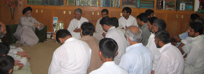 The beloved motherland is surrounded by all types of danger; attack on the sovereignty of the motherland will be defended courageously and we will not allow Pakistan to become sectarian state - Hamid Moosavi RAWALPINDI, July 11: The Quaid-i-Millat Jafariya Agha Syed Hamid Ali Shah Moosavi has said that there is need to invite the attention of the young people belonging to the Muslim Ummah towards Mashaheer-e-Islam and to disseminate their message by following their words and commandments to break the shackle of Satanism around the world of humanity. The beloved motherland is surrounded by all types of dangers; attack on the sovereignty of the motherland will be defended bravely and we will not allow Pakistan to become a sectarian state; Saudi Arabia should keep the dignity and honour of the holy places dear while expanding Harmain Sharefaen, demolition of seven mosques including Masjid e Fatima Zahra, Masjid e Hazrat Abu Bakar O Harat Umar is a matter of grave concern; Ayat Ullah Sheikh Baqir ul Namr should be released; Muslim nation should play their role to stop massacre of Barmi Muslims. This was stated by him while addressing the central office-bearers of the Mukhtar Organisation headed by Chairman Dr. S. Z. Naqvi, Central President Ali Furqani and delegates derived from all over the country. TNFJ Additional Secretary General Syed Shujaat Ali Bokhari and speaker Syed Bu Ali Medhi were also present on the occasion. Agha Moosavi said that history stands witness that only those nations become successful who prepare their youth for future so that they can handle the challenges faced by their leadership in future. He said Rasool-e-Khuda (SAAW) prepared Ahle Bait Athaar (A.S.) to get the truthfulness of Islam recognised and they introduced the rightful religion to the world by confronting the evil forces from Najran to Karbala. He said the religious elders deriving from the Maktab of Aal-e-Muhammad (A.S.) were taken to gallows, were poisoned to death and put in the constructed walls, one by one, during the disappearance of the Imam-e-Zamana (A.S.), but no oppressor could stop the mission of Muhammad (SAAW) and Aal-e-Muhammad (A.S.) because after departure of the one, the next one was aware of his responsibilities, the Parcham-e-Hussainiyyat that is in actual the flag of Islam continued to flutter high. The TNFJ chief said that Mukhtar Organisation is a branch of Tehreek Nafaz Fiqh-e-Jafariya striving for the supremacy of Islam. He said the west has entered our homes using the media weapon and has surrounded our hearts and minds instead of surrounding our geographical frontiers. He said the Rasool (SAAW) bore all types of oppression in Makkah and Shoeb-e-Abi Talib. He said when movements start prospering, they are surrounded and stopped, if they display in a positive manner then they defy them but if are based on fake promises they end in failure. He said the way Farzand-e-Abu Talib Hazrat Jafar-e-Tayyar (A.S.) defended Islam through oratory and preaching, that failed the atheist diplomacy and all their tactics. Therefore, he added, it is necessary for the young people to understand their Maktab and religious requirements so as to achieve success. Agha Moosavi made it clear that when the Khatmi Martabat (SAAW) extended invitation to Islam at Dawat-e-Zulasheera on the commandment of Allah, no one but Ali Ibne Abi Talib (A.S.) supported his call but Rasool (SAAW) was not disappointed. He said invitation to the righteousness should be extended with sincerity of purpose whether one accepts it or not as it makes no difference, your job is to disseminate your point of view. He said one has to snub himself to forward the movements ahead, and one has to put his ego behind therefore, he added, you should lace yourself with these qualities, protect your heart, mind and tongue because the wisdom lies behind your tongue. He said there is a saying, “The firm does not become firm under the heart is firm and the heart does not become firm until the tongue gains firmness.” He advised them to create firmness in their character and thoughts in the light of seerat of Masoomin (A.S.), follow your oath and utilise all your energy to follow the same. The TNFJ chief said that the live nations remember the blessings of their Mohsineen, Rasool (SAAW) introduced the sunnah of remembering the Mohsineen by observing the death of Abu Talib (A.S.) and Khadijatul Kubra (S.A.) as Aam Al-Huzn. He said Muhammad Hussain Shad Shaheed of Tehreek Nafaz Fiqh-e-Jafariya drew such a line with his blood that deprived the dictator in fulfilling his nefarious designs and he could not cross that line despite having all power at his disposal. He also quoted other Shuhada of the Tehreek who gave blood by following the path of Hussainiyyat. They included: TNFJ Pakhtunkhwa’s Sardar Mumtaz Qazilbash, Jawad Hussain Jawad, TNFJ Punjab president Allama Kazmi Aseer Jarvi, Karachi Region president Anwar Ali Tirmizi, Balochistan provinces secretary general Shabbir Qazilbash and many others. He said Sunnis and Shias are brethren; we will never allow anyone to turn Pakistan into a sectarian State and would continue to thwart the propaganda of those who cry hoarse of sectarianism in the country. He called upon the youth to fulfil their duty of protecting the objectives of the Shuhada. The Quaid-i-Millat Jafariya Agha Syed Hamid Ali Shah Moosavi reiterated his resolve that even if their body is torn into pieces and dispersed in the air after putting the same to ashes, the every particle of the body would raise the slogans of “Ya Hussain” and we will never allow anyone to cause any harm to the motherland. He said today our beloved motherland is confronted with danger from all around, conspiracies to mutilate beliefs are on the rise, and new dramas are being staged to misguide those who are following the path of righteousness. In these situations, the new generation is under the obligation to organise themselves, become aware of the national