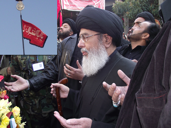 The demand of the governor’s rule in different provinces is not the failure of democracy but of the rulers and the politicians – Hamid Moosavi The politicians consider the public animals; there is no democracy in their parties; in every party there is a system of kingship and dictatorship; the public will have to get freedom from the looters who have disguised as leaders; the foreign policy of Pakistan has completely failed; Pakistan which has abandoned resources but those who are in power has made it slave of the colonial organizations like IMF; the flag of Hussainiat will be elevated till the Day of Judgement – Address of the Quaid e Millat e Jafariya to the mourners on the occasion of raising the standard of Abbas (PBUH) at Gulistan e Zainab in Islamabad ISLAMABAD, January 21: The Quaid e Millat e Jafariya Agha Syed Hamid Ali Shah Moosavi said that the demand of the rule of governor in different provinces is not the failure of democracy but of the rulers and the politicians who have disguised themselves in the democratic system and cheating the innocent public; the foreign policy of Pakistan has completely failed; the Indian aggression must be exposed on the international forums; Islam and Pakistan is the centre point of our loyalty while the flag of Hussainiat provides courage to the oppressed and destitute which will stay high till the Day of Judgement. He expressed these views in connection with the martyrdom anniversary of Imam Hassan Al Askari (PBUH) and the concluding Days of mourning of Imam Hussain (PBUH), while addressing to the mourners of Imam Hussain on the occasion of raising the standard of Hazrat Abbas (PBUH) at Gulestan e Zainab (PBUH) in Islamabad; on this occasion prominent scholars, mourners, matamies, and the organizers of Majlis were also present there. The leader of the TNFJ said that the way Umayyad used Islam for their rule, Abbasid used the name of the Holy Progeny of the Holy Prophet (PBUT) and Zia ul Haq used the name of the religion, similarly the rulers and the politicians to grab and to hold on to the power used the name of democracy and on the contrary they themselves trampled over the democratic values. There is no democracy in their own parties; in every party there is a system of kingship and dictatorship. The politicians consider the public animals; when ever they wished they pushed them in different directions. The rulers and the politicians use different tactics to use the public. He said that Pakistan which has abandoned resources but those who are in power has made it slave of the colonial organizations like IMF; if Pakistan was not looted then we would not have to see these days; The moving of politicians from one party into others is for their own interest who have no care for the public. Agha Syed Hamid Ali Shah Moosavi reiterated the saying of the master of the faithful Imam Ali, “the illness is due to yourself and you also have the cure”. He said that the solution of all the problems are with Pakistanis therefore they would have to get rid of these looters who have disguised as leaders. Every day they are befooling publics using new tactics. Agha Moosavi said that external powers are openly involved in the matters of Pakistan; India challenges Pakistan every day; a country that was involved in breaking Pakistan and raised the slogan of sinking the basic ideology of Pakistan in Bay of Bengal; took over Siachen, who made the lives of Kashmiris un bearable, is accusing Pakistan of being aggressive and defaming Pakistan internationally which is a cause of great concern; the foreign policy of Pakistan has completely failed. He said that the flags of the nations are signs of honour and dignity for them and therefore living nations never let their standards bow down. He said that Islam highlighted the dignity of the standard in the battle of Khyber when the Holy Prophet of Islam (PBUH & HHP) said, “tomorrow I will give standard to that person who will be man (brave), who will take stand and will never run away”. He said that Imam Hussain (PBUH) is the inheritor of all the prophets of Almighty Allah and the successor of the Holy Prophet (PBUH & HHP) while Hazrat Abbas, the standard bearer (Alamdar) was the successor of the standard bearer of the Holy Prophet, Imam Ali (PBUH) who sacrificed his arms but never let the standard of Hussainiat bow down which is in reality the standard of Sharia; today the followers of Hussainiat have kept it elevated. Agha Syed Hamid Ali Shah Moosavi said that Pakistan came into being on the name of Islam; its flag is the standard of Islam; the parliament, the judiciary and the administration should accept the supremacy of the constitution then only the standard of Pakistan will fly high. He made his pledge that the flag of Azadari will flutter high till the Day of Judgement and no power on earth can bow it down because its heir is alive that is called the Messiah and the whole of humanity is waiting for his appearance. This flag is the flag of justice ad fair play and a sign of destruction of oppression and barbarity. We while following the pious character of Hazrat Abbas Alamdar (PBUH) will sacrifice our arms and our lives but the flag of Islam will stay elevated.