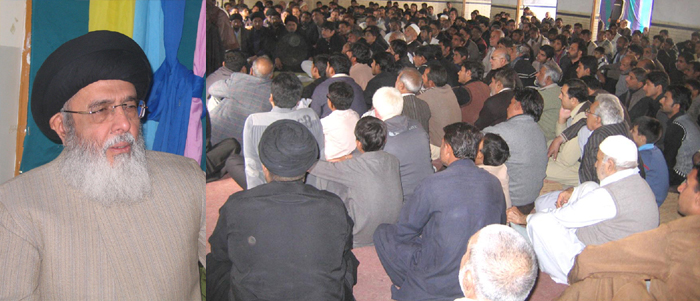 The atheist world never let any chance go wasted without causing harm to Islam and Pakistan - Hamid Moosavi India will be our perpetual enemy and it will remain so unless Kashmir issue is resolved in the light of the United Nations Resolutions keeping to the desire of Kashmiri people; had the Muslim rulers not been the colonial stooges then Muslims would not have to see these days; the continued terrorism is the result of the colonial trio’s coalition; the followers of the Holy Prophet (PBUH & HHP) by displaying practical unity and brotherhood during the Miladun Nabi processions and Mahafil prove to the satanic world that no power on earth could create any differences between Sunnis and Shias; the only solution to the problems faced by the Muslim nation and motherland Pakistan lay in practical following of the Holy Prophet (PBUH & HHP) as success will kiss Muslims’ feet if his holy character is made beacon of light - Address of the Quaid e Millat e Jafariya to the Mehfil e Mukhtar e Aal e Mohammad (RA); TNFJ will observe Aalmgheer Hafta e Wehdat O Akhuwat from 12 - 18 Rabiul Awwal ISLAMABAD, January 24: The Quaid-i-Millat Jafariya Agha Syed Hamid Ali Shah Moosavi has said the only solution to the problems confronted by the Islamic World and the motherland Pakistan lay in practical following of the pious charcater of the Holy Prophet (PBUH & HHP). The followers of the Holy Prophet (PBUH & HHP) by displaying practical unity and brotherhood during the Milad-un-Nabi processions and Mahafil prove to the satanic world that no power on earth could create any differences between Sunnis and Shias. This was stated by him while delivering his presidential address at the Mehfil of Mukhtar Aal-e-Muhammad where he announced to observe “Universal Hafta Wahdat-o-Akhuwwat” from 12-18 Rabiul Awwal in connection with the Jashan Eid Milad-un-Nabi and the birth anniversary of Hazrat Imam Jafar-e-Sadiq (PBUH). Agha Moosavi said that like atheism is called one nation, similarly Muslims are also one nation; the beloved motherland Pakistan came into being in the name of Islam. He said the atheist world never let any chance go waste to cause harm to Islam, the pious personalities of the religion and Sharia and the citadel of Islam Pakistan but our rulers have become numb and are seen anxious to declare India as the Most Favoured Nation. He said at present, India is our perpetual enemy and it will remain so unless Kashmir issue is resolved in the light of the United Nations Resolutions keeping to the desire of Kashmiri people, India stops genocide in Kashmir, releases Kashmiris who are imprisoned in Indian jails, compensation of Kashmiri martyrs is made, right of self-determination is given to Kashmiris in the Held Kashmir and dream of restoring peace in the region is realized. The TNFJ chief made it clear that Hindus and Zionists both are enemies of Islam. He said India first chopped off our one hand, then it persued to make nuclear bomb; Pakistan also had to acquired nuclear capability so that the balance of power may be maintained as a result of which Pakistan’s elected Prime Minister Zulfikar Ali Bhutto was sent to the gallows and a dictator was imposed in Pakistan in the shape of Gen. Ziaul Haq who sowed the seeds of terrorism in the country which the nation is still reaping. On the other hand, he added, India was committing border terrorism after carrying out water terrorism against Pakistan and is involved in the heinous activities of terrorism in Pakistan’s sensitive areas like Balochistan, Karachi, Khyber-Pakhtunkhwa and elsewhere. The interior minister has admitted that Indian consulates are running training centres for terrorism in Afghanistan, therefore the government should go to the International Court of Justice and other international fora and get India declared a terrorist State. Agha Moosavi said that the international powers keep double standards viz. Pakistan and drone attacks are still continuing despite restoration of the NATO supplies. He asked why the government and the opposition are silent on all these issues, which cropped up as a result of the colonial trio’s coalition who are the founders of terrorism. He said the Arab League and the OIC should exercise some honour as they have not yet resolved any issue pertaining to the Islamic World. He lamented that the world media was busy in anti-Islam activities adding that today the Islamic World would not have to see bad days had the Muslim rulers not become tools in the hands of the colonial powers. He said the colonial powers first rooted out Afghanistan through their agents, then they inflicted grieves on Iraq in the garb of Saddam, targeted Yemen, and Egypt and now they are after Syria but they are keeping s ilence viz. Burma and Bahrain. He said there is need to be imbibed with the spirit of Mukhtar (R.A.) to get rid of the colonial powers. He said the rulers and the politicians should divert all their energies towards Pakistan’s stability but unfortunately whole energy is being utilised to sabotage democracy and the name of Islam is being misused as did Umayyad and Abbasid.The Quaid-i-Millat Jafariya Agha Syed Hamid Ali Shah Moosavi said the only solution to the problems faced by the Muslim nation and motherland Pakistan lay in practical following of the Holy Prophet (PBUH & HHP) as success will kiss Muslims’ feet if his holy character is made beacon of light. Meanwhile, a central committee of Tehreek Nafaz Fiqh-e-Jafariya has been formed to organise programmes of Universal Hafta Wahdat-o-Akhuwwat. Meesam Tammar has been nominated as convener, Syed Abid Ali Shah as deputy convener, Syed Haider Karrar Moosavi as secretary, and Syed Nasr Abbas Kazmi as deputy secretary of this committee.