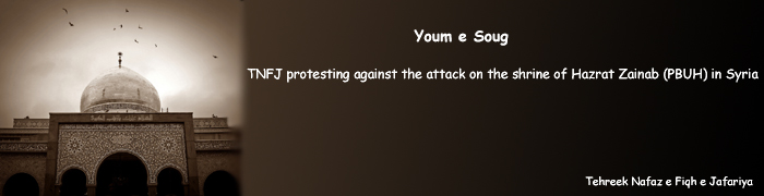 Subject: Are terrorists attack on the shrines of the pious companions, Godly people and the Holy Family of the Holy Prophet (PBUH & HHP) concern of Shia only? Assalaam O Aalaikum The satanic powers are continuously confronting the signs attributed to the religion and the pious personalities of Islam from the beginning. Abraha carried out a failed attempt to raze Ka’aba to ground but at that time the son of Hashimi tribe, Hazrat Abdul Muttalib (PBUH) prayed to Almighty Allah and the Ababeels proved themselves tough on elephants on which the Surah Pheel stands witness. On the beginning of 20th century when Usmania Caliphate was downed through the colonial agents, then the new group cropping up in Muslims set out to destruct Jannatul Baqee, Jannatul Moallah and even the Holy Tomb of the Holy Prophet (PBUH & HHP). This group succeeded in destructing the shrines of pious companions, mothers of faithful and the holy family of the Holy Prophet (PBUT) in Jannatul Baqee and Jannatul Moallah and they were just eyeing towards the Holy Shrine of the Holy Prophet (PBUH & HHP) on which the whole Islamic World, particularly the Muslims in the sub-continent became the symbol of protest. When the colonial powers saw their interests are being threatened, they stopped their agents from doing so and as a result of which the Holy Shrine of the Holy Prophet (PBUH & HHP) was saved from being destructed where Hazrat Abu Bakar and Hazrat Omer are also buried along with the Holy Prophet (PBUH & HHP). From the destruction of Janat ul Baqi to-date, wherever this group has reached, they called everyone non-Muslim except themselves and targeted the shrines of the pious personalities of Islam and saints wherever they got a chance. With a pat on the back from a particular Muslim State, this handful group desires to impose their ideology and belief on the whole Islamic World. This group desecrated the shrines of Khalifa-tur-Rasool Hazrat Ali (PBUH), the grandson of the Holy Prophet, Imam Hussain (PBUH) and Imam Abu Hanifah (R.A.) in Iraq while razed to the ground the shrine of Imam Al-Askareen (PBUT). They targeted the shrines of pious companions of the Holy Prophet (PBUH & HHP) in Mazar Sharif in Afghanistan, Libya, Bahrain, Tunis, Egypt, and more than a dozen shrines in Pakistan including Hazrat Shah Abdullah Ghazi, Data Darbar, Bari Imam, Fareed Ganj Shakar, Kakajee and now they are playing this heinous game on the Syrian soil where they first caused damage to the shrine of the beloved companion of the Holy Prophet (PBUH & HHP) Ammar Yasir (R.A.), then shocked Muslims by digging out the grave of the pious companion of the Holy Prophet Hazrat Hajr Bin Aadi (R.A.), and then targeted the Haram of Hazrat Sakina (PBUH) and now a few days ago they launched rocket attack on the shrine of the beloved granddaughter of the Holy Prophet (PBUH & HHP), Hazrat Zainab Binte Ali (PBUH) on which the heads of Muslims went down in shame. But it is unfortunate that all Muslim rulers are silent on this grave incident and the tongues of human rights institutions are sealed and the United Nations, it seems, is not aware of this incident. These incidents have no value in the eyes of newspaper editorial writers. In this situation, today when the shrines of pious companions and the family of the Holy Prophet (PBUT) are being targeted the world over; only Maktab-e-Tasheyyo is seen lodging protest. The Parliament of the country created in the name of Islam is also silent and so are its rulers and politicians. Neither Arab League budged an inch nor did Islamic Conference come out from deep slumber. The sessions of these organisations are summoned only when they are signalled to do so by America or any action is required against a country that is on American target. When a girl was attacked she was taken all the way to the United Nations but no one budged even an inch on the grave incident of attack on the Holy Shrine of Hazrat Zainab (PBUH). Why those who lodge protest on common incidents are keeping silence on this big incident? It was only Tehreek Nafaz Fiqh-e-Jafariya that came out to observe the Day of Ummul Momineen Hazrat Khadija tul Kubra (PBUH) because she is the mother of all faithful. The media and journals are bent upon proving that she belongs only to one school of thought. Do Ahle Sunnat not keep renowned companions like Ammar Yasir (R.A.) and Hajr Bin Aadi dear to them? Is there no unrest in the ranks of Ahle Sunnat brethren on attacks on the granddaughter of the Holy Prophet (PBUH & HHP)? Definitely there is. Then the media and journals will have to give up that trend. The renowned dailies will have to write editorials on this big incident and will have to highlight this issue as an issue of Islam and not only that of Shi’ite. All schools of thought will have to hand-in-hand to unveil these terrorists who are earning bad name for Muslims and will have to make their stance clear. Because the enemy desires that the Kalma-reciting become entangled with each other and the colonial powers continue selling their arms, as they desire to watch Muslims are destructed at the hands of Muslims. We want to make it clear that love of pious pious companions and Ahle Bait Athaar (PBUT) in our hearts could not be reduced through these nefarious tactics like suicide attacks, destruction of signs of the pious personalities of Islam. We can die but this love will never ever die. Wassalam, Syed Mazhar Ali Shah Advocate The Secretary General, Tehreek Nafaz Fiqh-e-Jafariya