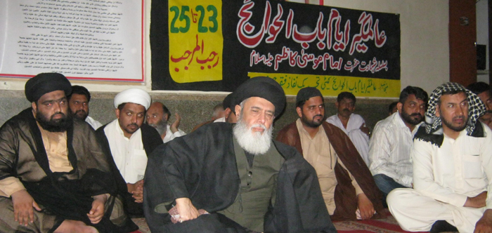 The whole world is surrounded by the international colonial powers who desire to ensure their presence everywhere and for this purpose the Muslim world is their particular target – Hamid Moosavi ISLAMABAD, June 6: The Quaid-i-Millat Jafariya Agha Syed Hamid Ali Shah Moosavi has said that there is need to follow the pious character of Imam Musa Kazim (PBUH) so as to get the world of humanity rid of satanic forces as it is the path of victory over the evil and dignity of Monotheism, the Prophethood and Walayat. He stated this while delivering a special address at the Majlis of the martyrdom anniversary of Hazrat Musa Bin Jaffar (PBUH) marking the conclusion of Universal Ayyam Babul Hawaej here at Al-Murtaza Wednesday that was observed throughout the country with religious spirit, devotion and respect. Agha Moosavi said at present the whole world is surrounded by the international colonial powers who desire to ensure their presence everywhere and for this purpose Muslim World is their particular target. He said motherland Pakistan is the particular target of terrorism because the super powers and our perpetual enemy are eying Pakistan’s natural resources and on its atomic capability which is unbearable. He said the new government that has come into power after the general elections will have to change themselves as well as the whole system because their trial is not over after their success in elections rather it has begun now, therefore, they will have to exercise utmost wisdom and care while devising new guiding principles for the foreign policy and national integrity so that they could form a foreign policy staying clear of influence of super powers and could see America face to face in settling all issues including Drone attacks, Afghanistan matters and national integration. He said the only solution to all long-standing issues for Pakistan lay in getting rid of the trio of international colonial powers, Zionists and Hindus. The TNFJ chief made it clear that like his forefathers, Imam Musa Kazim (PBUH) never remained silent in seeking justice for the oppressed and have-nots and kept the candle of guidance enlightened with utmost responsibility. He ultimately kissed martyrdom for the greatest objectives. He had told the tyrant rulers and dictators of his era that our bodies could be chained but no restrictions could be imposed on our hearts and like his forefather rejected every policy of the oppression and brutality, he did not bow down before them either. Similarly, he added, the path followed by Musa Bin Jaffar’s is the victory of righteousness. He laid down his life in protecting the religious goal bearing difficulties and problems but did not bargain on principles. Agha Moosavi said that the captive of Baghdad Imam Musa Kazim (PBUH) exercised firmness till sacrificing his life and performed many good deeds that earned good name for this inheritor of the Holy Prophet (PBUH), the grandson of Ali (PBUH) and Batool (PBUH). He said even today the world of humanity, particularly the world of religion and Sharia are facing oppression, life has become difficult for the people of Palestine and Kashmir, war has been imposed on some States, particularly on Pakistan while incidents of murder, arson, bomb blasts, target killings, and Drone attacks are the order of the day. The patrons of oppression and brutality are thinking that they would force us to bow down but they should know that like Imam Musa Bin Jaffar (PBUH) could not be stopped by the tyrant rulers and dictators, similarly they cannot divert his followers from the righteous path because it is the Godly promise that Islam has to reign supreme and atheism has to go down. The TNFJ chief said that Hazrat Imam Musa Bin Jaffar (PBUH) got the world of humanity rid of humiliation and we, following in his footsteps condemn all types of oppression and brutality and support the oppressed wherever they are. He said from amongst the Representatives of Allah, one greatest personality is Hazrat Imam Musa Kazim (PBUH) who, after the martyrdom of his father, took over the responsibility of the university of Hazrat Imam Jaffar e Sadiq (PBUH) in Madina Munawwarah. He said that uncountable scholars and the narrators of Hadees were imparted knowledge in that institution. The Quaid-i-Millat Jafariya Agha Syed Hamid Ali Shah Moosavi presented condolences on the occasion of the martyrdom anniversary of Hazrat Imam Musa Kazim (PBUH) in Bargah-e-Risalat and the followers of religion and Sharia and expressed his commitment to continue their struggle for hatred against the oppressors and support to the oppressed till the re appearance of Hazrat Hojjat Ajjal Allah Farajah.