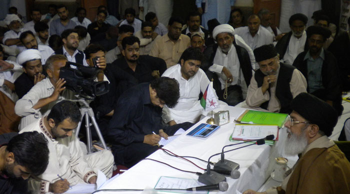 The rulers should perform in line with the constitution keeping personal and party interests and all types of reservations aside – Hamid Moosavi ISLAMABAD, October 11: The Patron-in-Chief of Shia Ulema Board Quaid-i-Millat Jafariya Agha Syed Hamid Ali Shah Moosavi has said that the rulers should perform in line with the constitution keeping personal and party interests and all types of reservations aside, suitable environment should be provided to the Parliament, Judiciary and the Administration and no institution should interfere in one other’s work so that the honour of the country is heightened. Asswa-e-Abuzar Ghaffari (R.A.) is the best example for the powers that be to follow who accepted exile but did not bow down before oppression and brutality. He expressed these views while addressing the Majlis-e-Abuzar organized at Al-Murtaza Islamabad Friday to mark the Shahadat of Sahabi-e-Rasool Hazrat Abuzar Ghaffari (R.A.). Agha Moosavi also announced to observe Youm Baqar Al-Uloom on Sunday Zilhaj 7 in connection with the Shahadat of fifth Tajdar-e-Imamat Hazrat Imam Muhammad Baqar (A.S.). He said in Islam, justice and fair-play have been considered the Asaas of religion and Shariat and at present the basic reason for the current crises is lack of justice and fair-play and the biggest deed of the Hadiyan-e-Rah-e-Khuda in the universe had been restoration of justice and fair-play that is near to Taqwah. The TNFJ chief made it clear that objective of creation of the being is Bandagi while objective of the Bandagi is Zuhd-o-Taqwah. He said the Holy Prophet (SAAW) while stressing the need of justice and fair-play had stated that “Ali Ibne Abi Talib (PBUH), is the best decision makers from amongst you.” His Ahle Bait Athaar (PBUT) and Sahaba Kubaar have rendered host of sacrifices for restoration of justice and fair-play amongst which the name of Hazrat Abuzar Ghaffari is highlighted to whom Hazoor-e-Pak (SAAW) had advised that “Oh, Abuzar, people are unaware of two blessings, one is physical health while the other is spare time. He then advised to value five things i.e. (1) Think young age a blessing before becoming old because when old one cannot enjoy Bandagi; (2) Value health before illness as one can enjoy Bandagi when healthy; (3) Value affluence before poverty; (4) Value spare time before your busy schedule so that you can perform Bandagi with a satisfied heart; (5) Value life before you die because you could not do anything after you die. Agha Moosavi said that all sayings of the Nabi (SAAW) while addressing Abuzar (R.A.) are an advice for all rulers and leaders because our rulers are delaying decisions with inability to decide in time. APC was held about a month ago but no one knows what will happen, he added. He lamented that terrorism, Drone attacks, kidnapping for ransom, target killing, increasing prices of petroleum products and articles of daily use are making the poor poorer while terrorists are doing the rest. The Quaid-i-Millat Jafariya Agha Syed Hamid Ali Shah Moosavi said all Makatib including the Maktab-e-Tasheyyo had given heavy mandate to the present government, therefore they are under the obligation to take practical steps in resolving country’s problems, particularly terrorism, corruption, load-shedding and price hike on priority basis, otherwise they will lose the confidence of the people.