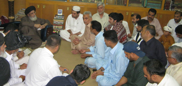 The destruction of shrines of Anbia Karaam and desecration of holy places is the cause of displeasure of Allah and Rasool (SAAW) - Hamid Moosavi ISLAMABAD, August 2: Chief of the Tehreek Nafaz Fiqh-e-Jafariya Quaid-i-Millat Jafariya Agha Syed Hamid Ali Shah Moosavi has said that destruction of shrines of Anbia Karaam and desecration of holy places is the cause of displeasure of Allah and Rasool (SAAW) and there is no possibility for the Islamic World to get rid of problems faced by it unless the glory of the same is restored. He said there is Zionist hand behind the destruction of shrines of Anbia Karaam in Iraq. Colonial powers are playing the similar game in Gaza that they played in Iraq and Israeli monsterism is merely a preface and if Muslims did not jointly pitched themselves against colonial plans then they should get ready for terrible results. He said had the Muslim Ummah stopped destruction of Jannatul Baqee and Janntul Moallah then no power should have the courage to put the Bait Al-Maqdas on fire nor the shrines of Anbia Karaam, pious Sahaba Kubaar (R.A.), and Ahle Bait (A.S.) would have been destructed. He expressed these views while addressing a delegation comprising office-bearers of Tehreek Nafaz Fiqh-e-Jafariya Khyber-Pakhtunkhwa and provincial elite. Agha Moosavi called upon the Muslims the world over to observe Youm Inhidaam Jannatul Baqee on 8 Shawal and practically display their eternal attachment with Anbia Karaam, Ahle Bait (A.S.), pious Sahaba Kubaar (R.A.) and Ummahatul Momineen and raise voice for restoration of the dignity of their signs and shrines. He called upon the OIC to devise a strategy to stop continued destruction of holy places at the hands of terrorist militants. He termed the drowning of dozens of people in the Karachi sea incompetence of the administration and said non-provision of resources to tackle catastrophe and emergency situations is a national tragedy. The TNFJ chief said that Islamic World was weakened by cutting the Muslim States into pieces after the World War-I and then taking the advantage of this weakness and shrines of Islamic heroes existing in Jannatul Baqee and Jannatul Moallah for 1300 years were razed to ground. Had the Muslims the world over and particularly those of India not resisted this move by launching Tehreek-e-Khilafat then, perhaps, they would also had razed the Roza-e-Rasool (SAAW) to ground. Today the same conspiracy is being repeated, he said adding that Muslim rulers in greed of prolonging their rules are being used to pitch Muslim States against each other and the anti-Islam forces have committed aggression against Muslims by taking advantage of these differences but, he lamented the Islamic World was in deep slumber. The Quaid-i-Millat Jafariya Agha Syed Hamid Ali Shah Moosavi made it clear that the universal protest of Youm-e-Inhidaam Jannatul Baqee is not against any country or Maslak rather for the protection of great Islamic asset that is the joint asset not only of all Masalik and Makatib but that of the coming generations and the whole humanity. Sardar Abul Hassan, president TNFJ Khyber-Pakhtunkhwa on this occasion apprised the Quaid-e-Tehreek that main Matmi rallies will be organised in Peshawar, Kohat and Dera Ismail Khan on 8 Shawal in addition to similar congregation at many places throughout the province. He also presented the report on programmes for the recently concluding month of Ramazan.
