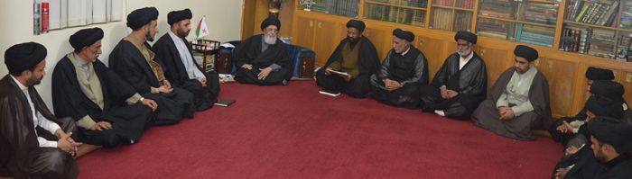 The nation will never accept any compromise on Kashmir issue – Hamid Moosavi ISLAMABAD, March 12: The Patron-in-Chief of Supreme Shia Ulema Board and chief of Tehreek Nafaz Fiqh-e-Jafariya Agha Syed Hamid Ali Shah Moosavi has said that the Quaid-i-Azam had declared Kashmir as the jugular vein of Pakistan, therefore, our rulers should keep in mind that the nation will never accept any compromise on Kashmir issue. Therefore, he said, the rulers should not fall prey to the Indian conspiracies for any night assault on Pakistan’s integrity and it should be made clear on India in unequivocal terms that their relations cannot become pleasant unless Kashmir issue is resolved in line with the United Nations Resolutions keeping to the desire of Kashmiris. This was stated by him while addressing the central office-bearers of Jamiat Ulema-e-Jafariya Pakistan who called on him at the head of their chief Hojjatul Islam Syed Mohsin Ali Al-Hussaini who also presented condolences to him on the Shahadat of Khatoon-e-Jannat in connection with the Ashra Aza-e-Faimia. Agha Moosavi said that said advice from the British foreign minister not to link the Kashmir issue for Pakistan-India dialogue is illogical, pro-India and is not acceptable. The rulers use the name of Islam of survival of their power or to achieve it are actually the agents of the colonial powers who desire that Muslim States remain the battlefield and Muslims continue killing each other. The Chief of the Army Staff Gen. Raheel Sharif has took the onus to turn Pakistan into Amnistan therefore the whole nation should help him in this task. Ulema Karaam should apprise all sections of society of the real image of Islam so that the extremism and terrorism are rooted out. He said the Khatoon-e-Jannat Hazrat Fatima Binte Muhammad (S.A.) was first to raise voice for women at large that guarantees protection of women’s rights. The TNFJ chief said that Ulema Karaam have been termed inheritors of Anbia therefore they would have to adopt the tenets of Phaighambars. He said the Ulema-e-Haq presented sacrifices of their lives in preaching the religion. He said it is obligatory for preachers of the religion to create facilities and adopt tolerance. He said knowledge and deeds go hand in hand without which the human being remains incomplete. Knowledge is the light spread of which is included in the duties of the Ulema, he added. He made it clear that only Islam is the universal and sent religion for which our forefathers carried out practical struggle and presented invaluable sacrifices as a result of which the message of Islam is marching ahead continuously. The Quaid-i-Millat Jafariya Agha Syed Hamid Ali Shah Moosavi said the Holy Prophet (SAAW) despite imposition of many wars on him by atheists adopted defensive technology therefore the motherland Pakistan being citadel of Islam and the only Islamic atomic power should adopt such a strategy and foreign policy that may carry the interests of the Islamic World, nation and the country because, he added, the atheist ideologies were continuously targeting Islam and Pakistan and the seerat of the Khanwada-e-Muhammad and Aal-e-Muhammad (A.S.) is the best example to follow to confront them. He said the oppressive rulers are imposed and duas are not accepted when we keep a distance from the Daman of pious personalities.