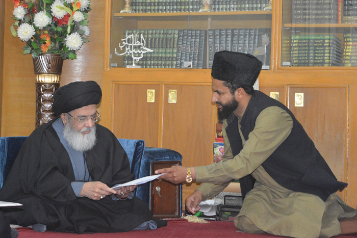 Whole nation salutes Pakistan army for uncovering the network of RAW and its supporting agencies – Hamid Moosavi ISLAMABAD, March 27: The Chief Patron of Supreme Shia Ulema Board and Tehreek e Nafaz e Fiqah Jafariya Agha Syed Hamid Ali Shah Moosavi has said that courageous resolve of General Raheel Shareef to complete the Economic corridor is becoming a reality. Whole nation salutes Pakistan army for uncovering the network of RAW and its supporting agencies. In order to clean the poison spread by the agencies of enemy states, the scope of Zarb e Azab operation must be extended to the whole country. Recent suicide bomb blasts in Quetta, Charsadda, Peshawar and target killing of Razi ul Hassan Advocate and members of police in Dera Ismail Khan is part of creating chaos along the route of economic corridor. Government must bring the perpetrators of these incidents to justice. Damages caused to the innocent Pakistanis due to terrorism while Indian support to the terrorists must be exposed through a comprehensive media campaign at international level. The progeny of every human is though his son however, the progeny of divine personality of Hazrat Muhammad (PBUH&HHP) originated from his sacred daughter Hazrat Fatima Zahra (S.A). According to the famous historian of Ahl e Sunnah, Imam Fakhar udd Din Razi, the world-wide spread of Saadaat e Uzzam is Allah’s befitting response to those who called the holy Prophet (PBUH&HHP) as “Abtar” on the demise of his sons Abdullah and Qasim while their own signs have been vanished. Respecting Sadaat is mandatory for every lover of the holy Prophet (PBUH&HP). He said this while addressing to a delegation of TNFJ Gujranwala led by Muballigh e Islam Allama Azhar Abbas Haidery, the son of an active leader of Pakistan movement, Taajul Munazireen Allama Taaj ud Din Haidery. On this occasion, Allama Azhar Haidery presented the script of his book written on the subject of Azmat e Khandan e Risalat and Hurmat e Saadaat, to Quaid e Millat e Jafariya Agha Syed Hamid Ali Shah Moosavi. Agha Syed Hamid Ali Shah Moosavi said that anti-Pakistan forces are trying to fail Pakistan since its inception and leave no stone unturned in causing damage to our motherland. Indian conspiracies broke Pakistan in 1971 which has been proudly accepted by the then Prime Minister Indra Gaandhi to the existing Prime Minister Moodi however; the international consciousness remained silent because Pakistan never fought her case of Indian aggression and intervention with full spirit. After London, Indian RAW’s involvement in Balouchistan has also been exposed. He said that some colonial forces and specially India are worried about the profitability of Pak-China Economic corridor and Gawadar projects and trying to fail these projects at any cost. India was planning to perform surgical strikes against Pakistan in the garb of Pathankot incident however; courageous armed force of Pakistan thwarted her conspiracy. Agha Syed Hamid Ali Shah Moosavi said that India tried to prove Pakistan as terrorist state however, she fell into her own trap and now it has been proved that India is the biggest terrorist state and 70 thousand Pakistanis have lost their lives due to her terrorist activities inside Pakistan. Pakistani government must escalate this issue to the international forums as otherwise, people of Pakistan will be rightful in considering that Government is trying to avoid this issue. Agha Syed Hamid Ali Shah Moosavi said that only the family of Sadaat enjoys this honor that it will exist till the time of Mehshar. According to a hadees of the holy Prophet (PBUH&HHP) every progeny originates from the son except the progeny of the holy Prophet (PBUH&HHP) that originates from her daughter Hazrat Fatima Zahra (S.A). Agha Moosavi said that Auliya and Fuqaraa from Sadaat families spread the teachings of Islam to the whole world through love, affection, sympathy and tolerance and due to their efforts the flags of Tauheed o Risalat o Walayat are waving high all across the world. On this occasion appreciated the efforts of the father of Allama Azhar Haidery, Taajul Munazireen Allama Taajuddin Haidery and Muballigh e Azam Allama Muhammad Ismail for the protection of Khatam e Nabuwwat and Radd-Qaadiniyat. |