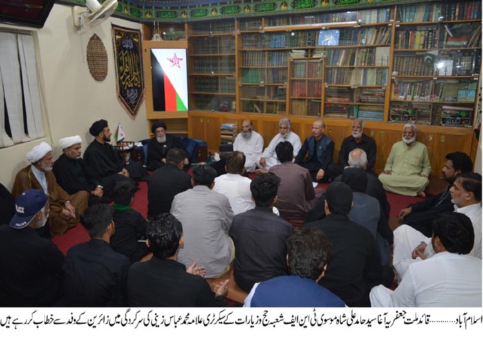 - Hamid Moosavi ISLAMABAD, October 13: The Patron in-Chief of Supreme Shia Ulama Board and Head of Tehreek e Nifaz e Fiqah Jafariya Agha Syed Hamid Ali Shah Moosavi has said that the governments of Iran and Iraq must eliminate the requirement of Visas for Pakistani pilgrims Zaireen. Steps taken by the foreign ministers of Pakistan and Iraq to resolve visa problems are worth appreciating while we are also grateful to the Iranian government for facilitating Pakistani Zaireen. Government of Pakistan must take concrete actions to permanently resolve issues faced by the Pakistani Zaireen. The matters of poor Zaireen must not be operated like a business opportunity. Previous government sabotaged the National Action Plan by handing over the matters of Zaireen to proscribed groups, current government must take rectifying actions and avoid past mistakes. Media fulfilled its national responsibility by exposing extortion mafia looting the poor Zaireen. Law must act to bring the miscreants to justice. A sea of people moving towards Karbala on Arbaeen e Hussaini proves that Hussain (A.S) belongs to Almighty and Hussain (A.S) belongs to everyone. That is why people belonging to every country, religion, and sect are offering tributes to the eternal sacrifice of Imam Hussain (A.S). He said this while addressing to a delegation of Zaireen led by TNFJ’s Secretary for Hajj o Ziaraat wing Allama Muhammad Abbas Zaini. Agha Syed Hamid Ali Shah Moosavi reiterated his demand to start Quetta-Zahidan Rail service which will also strengthen CPEC, ship and ferry services for Zaireen must also be started, cost of air-travel must be reduced through decrease in duty fees, number of security convoys must be increased for Zaireen travelling by road while convoy dates must be set and announced so that Zaireen do not have to wait much in Quetta or Taftan which sometimes even causes starvation for poor Zaireen while the proscribed groups take benefit of the situation and try to provoke them. Rules and regulations for Zaireen’s travel along with the days of departure and arrival must be publicized through channels, newspapers and social media so that Zaireen could formulate their travel plans accordingly. Quetta-Taftan route must be completely handed over to the army so that no terrorist could even dare to look this way. Provincial and Central governments must formulate a coordination committee to cooperate with Tehreek e Nifaz e Fiqah Jafariya (TNFJ) which must comprise of authorized and empowered government officials who could be contacted for taking immediate actions during any critical situation. Medical assistance for Zaireen must be provisioned on permanent basis for Zaireen in Quetta and Taftan, Air-Ambulance must be arranged, basic facilities must be improved in Taftan and Complaint desks for Zaireen must be set up in the federal capital Islamabad as well as the Provincial capitals to further facilitate and improve the arrangements. Agha Syed Hamid Ali Shah Moosavi said that right from the government of Musharraf to the present government, the dignitaries of TNFJ have been intimating the authorities about the problems faced by Zaireen while also informed the relevant ambassadors. As per the process, governments must have facilitated Pakistani citizens embarking upon a sacred journey by themselves however, it is unfortunate that rulers and politicians are preoccupied in their own engagements and their ignorance incremented the problems faced by the Zaireen manifold during the last few years. He said that not only Muslims but even the non-Muslims of Pakistan consider visiting the holy Shrines of Islam’s heroes in Iran, Iraq and Syria as an honor and source of blessings. Poor Zaireen who cannot afford to travel by air spend their all savings to go and offer tributes to these sacred personalities who protected the signs of Islam. Agha Syed Hamid Ali Shah Moosavi said that pilgrimage to the shrines of Prophets and Saliheen tears the veils of ignorance and reminds about the true values and teachings spread by these sacred personalities of Islam. By offering Ziarat of sacred sites, peoples’ faith gets strengthened. He appealed to the Zaireen to inform Zaireen coming from other parts of the world about problems of Kashmir and Palestine and offer special prayers for the unity of Islamic world, strength of Pakistan and resolution of issues in Kashmir, Palestine, Bahrain, Yemen and Qateef. |
