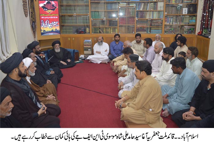 - Hamid Moosavi ISLAMABAD, September 22: The Patron in-Chief of Supreme Shia Ulama Board and Head of Tehreek e Nifaz e Fiqah Jafariya Agha Syed Hamid Ali Shah Moosavi has said that the attacks on Saudi Oil refineries were executed by none other but America. Aramco attack is a new episode of 9/11. The chief of colonial powers wants to intensify tension between Iran and Saudi Arabia to make Middle East another Tora Bora. USA was already selling scrap weaponry to Saudi Arabia and now she will further suck the blood of Muslims by sending her scrap soldiers. The question arises that where was the forty-states alliance when the Aramco installations were attacked? For Gods sake, Muslim rulers must demonstrate wisdom as the troika of the evil forces has transformed Muslim countries into battlefields to keep themselves safe. OIC was founded to resolve problems faced by the Muslim world therefore, a meeting of OIC must be summoned to diffuse tension among Muslim countries. Putting Pakistan into the lap of anyone else for some monetary benefits is an insult to Pakistan and its nationals. Pakistani rulers must not become a party in the internal conflicts of Muslim countries. They must learn diplomacy from Modi who maintains healthy relations with Iran while also receives awards from Saudi Arabia and UAE. Only Turkey, China and Iran have supported Pakistan in the Kashmir dispute, why didn’t Prime Minister of Pakistan visit these countries? Human rights violations against the Hindu community of Ghotki is an act of Modi’s agents. Responding to the call of the Holy Prophet’s grandson Imam Hussain (A.S), even non-Muslims sacrificed themselves in Karbala which provided eternity to Islam’s message of peace. He said this while addressing to the TNFJ’s high command. Agha Syed Hamid Ali Shah Moosavi noted that it is an open secret that the chief of evils America is the biggest enemy of Muslims. Why doesn’t the hypocrite America dispatching soldiers to Saudi Arabia under the garb of attacks on Oil refineries take steps to stop atrocities against human beings in Kashmir, Palestine, Libya, Iraq, Afghanistan, Yemen, Bahrain, and Rohingya? Unless Muslims rulers do not opt to resolve their internal conflicts by themselves, stop interfering in each other’s country, the problems of Muslim Ummah will remain unresolved and bloodshed will continue. Agha Syed Hamid Ali Shah Moosavi said that India is taking benefits from America, maintaining relations with Russia and China while our rulers always became party which inflicted harm to Pakistan and made new enemies for the motherland. Why did the Prime Minister forgot that Pakistan’s Parliament has already approved a resolution which declared that Pakistan will stay neutral in Saudi-Yemen dispute. Arabs have been acting like a scared cat in the matter of Modi’s attack on Pakistan jugular vein Kashmir while in this grave situation, UAE rewarded Indian PM with the highest award and rubbed salt on the wounds of Kashmiris. Prime Minister is claiming that his policy is right, he must tell the nation which of his policy has succeeded? Have the problems of Kashmir and Palestine resolved according to the UN resolutions? What achievements have been made by Pakistan’s foreign policy? He stressed that accepting mediation on Kashmir dispute would be like throwing the Kashmiris into further atrocities and oppression. They must see the results of mediation on Palestine where even Al-Quds became the capital of Israel, Occupation of Golan Heights strengthened while the next step is to engulf the valley of Jordan to move on with the campaign of Greater Israel. Agha Syed Hamid Ali Shah Moosavi said that Islam declared laws and rights for minorities while other religions enforced restrictions on the minorities. Islam allows the minorities to spend their lives according to their faith and ideologies and only stops from negating Islamic teachings. Muslim governments always protected the rights of non-Muslims and that is the reason that minorities always remain satisfied under Muslim rulers. Pakistan was founded on the basis of two-nation theory however, in the struggle of founding an Islamic state, minorities also contributed significantly. Islam has always instructed to adopt good behavior and justice towards minorities. Surah e Maida of the holy Quran clearly states that do not abandon justice due to enmity towards any nation rather keep justice as it is closer to Taqwa. The holy Prophet (PBUH&HP) said that whoever oppresses a non-Muslim, violate his rights, or overloaded him, I will stand as an advocate for that non-Muslim against that Muslim in the court of Almighty Allah. That is why protecting the lives, belongings, and property of Non-Muslims is the duty of Islamic state. The incident of Ghotki is an attempt to deviate attention from atrocities in Kashmir. Agha Syed Hamid Ali Shah Moosavi said that Surah e Noor of the holy Quran declares Hijab as mandatory for Muslim women. The lady of heavens Hazrat Fatima Zahra (S.A) one asked that who is the best woman? She replied that whoever does not see a Gher Mehram (stranger) while the strangers did not see her. Hence, U-turn on Hijab is against the rulings of a Medni state. Therefore, when we use the name of Medina then we must be willing to act on Maroofaat and avoid Munkiraat. |