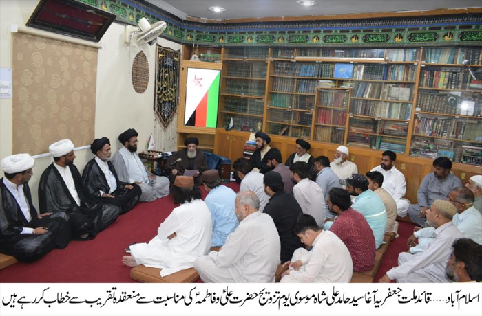 ISLAMABAD, July 23: The Patron-in-Chief of Supreme Shia Ulema Board Quaid-i-Millat Jafariya Agha Syed Hamid Ali Shah Moosavi has said that legislation aimed at stopping terror financing is a good step but implementation of these laws is also necessary. Which NAB would investigate that how those religious leaders today became trillionaires who don’t had even a bicycle in the 1980’s? Money trail of those should be found out who spread hatred and riot in the name of religion so their terror activities could come to the fore. Those should not be extended government protocols who are not allowed to collect hide on Eidul Azha. Campaign for deshaping religious beliefs and fulfillment of foreign agenda is continuously going on at the behest of ‘Na-Maloom’ money. Those who sing the song of peace in government-sponsored conferences openly sow the seeds of riot in society. If senior journalist Mir Shakilur Rehman is not being allowed bail in a 35-year old case then why general amnesty is being given to those who have amassed multiple properties in the name of religion? Pakistan Army and people have given precious sacrifices for rooting out terrorism which should not go waste in the name of expediencies. The Qalandarana echoes raised by Hazrat Abuzar Ghaffari (R.A.) against those who amass gold and silver and in favour of the rights of the poor are still rife. ‘Youm-e-Sahabiyyat’ will be observed on Zil Hajj 5 to highlight the greatness and dignity of the pious Sahaba Kubaar (R.A.). These views were expressed by him at a function organized in connection with the Youm-e-Tazveej of Hazrat Ali (A.S.) and Hazrat Fatima (S.A.). Agha Moosavi said Pakistan is a ray of hope for the Islamic World and is a shelter for the oppressed Kashmiris. He said the oppressed people of Palestine also call Pakistan when they are in trouble. He lamented that in addition to foreign attacks the internal conspiracies also did not stop to down this great citadel of Islam. These elements, he added, further strengthened owing to Afghan war in the 1980’s decade. Lavish foreign funding was extended to these elements to down the Soviet Union as well as to cause harm to the oneness of Pakistan, he added. He said crushing the democracy has also provided favourable environment for regionalism and lingualism and terror groups were fielded in elections on the basis of sects and lingualism. He said the political governments that followed martial law used the ‘Goli’ and ‘Gali’ organisations as pressure groups while the weaker governments were forced to lure those individual members who had come to assemblies on the basis of religious biases and this situation still exists. The TNFJ chief said that Tehreek Nafaz Fiqh-e-Jafariya has been used to raise voice to ban foreign aid being received by religious parties and their participation in election on the basis of Maslak and religion since 1984. The people with insight also rejected these traders of hatred and biases supporting our call as a result of which those who tried to seek votes in the name of Maslak and community were always rejected. He said unfortunately political parties are luring those parties who have very few members in the assemblies in a bid to win the number game as a result of which the proscribed parties are taking the benefit of this black mailing. Agha Moosavi said that the Rasool-e-Khuda (SAAW) carried out Tazveej of Khatoon Jannat Hazrat Fatima Zehra (S.A.) with Hazrat Ali (A.S.) on the orders of Allah. Hazrat Anas (R.A.) states: “Rasool Allah (SAAW) was sitting in the Masjid and he told Hazrat Ali (A.S.) that this is Gabriel who is telling me that Allah Has performed the wedding of Ali (A.S.) with Fatima (S.A.). 40 thousand angels participated in this Nikah as witnesses and Shajra-e-Tooba was asked to shower pearls and rubies on them, then Hoors started filling the dishes with these pearls and rubies which the angels will continue to give to each other till the Day of Judgment.” He quoted Shah Abdul Haq Muhaddis Delhavi that he wrote in Madaraj Al-Nabuwwat that “At the time of Nikah, the Prophet (SAAW) told Hazrat Fatima Zehra (S.A.) that Haq-e-Taala has chosen two great personalities from earth; one of them is your father Muhammad Mustafa (SAAW) and the other is your husband Ali (A.S.). The Quaid-i-Millat Jafariya Agha Syed Hamid Ali Shah Moosavi said that the wedding and dowry of universe’s Syed and Sardar Hazrat Muhammad’s (SAAW) daughter Khatoon-e-Jannat Hazrat Fatima Zehra (S.A.) is greatest example of simplicity. He said in the present era, the face-saving efforts and lavish trend has deshaped the Islamic societies. He advised the Islamiyan-e-Alam to follow the Aswah of Sarwar-e-Alam (SAAW) if they desire to get rid of these difficulties. |