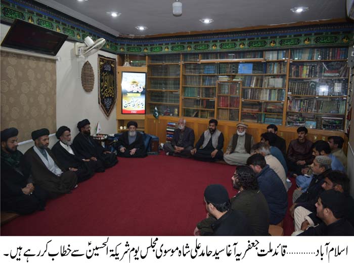 While following the brave role of Hazrat Zainab (SA), the world of evil can be defeated - Hamid Moosavi ISLAMABAD, March 12: The Patron-in-Chief of Supreme Shia Ulema Board and Quaid-i-Millat Jafariya Agha Syed Hamid Ali Shah Moosavi has said that Hazrat Zainab Binte Ali (S.A.) is the exemplary woman of the human history and the spokesperson of Hussainiyyat. Oppressed women throughout the country including Kashmir and Palestine who love the Khanwada-e-Nabuwwat, Riasalat and Wilayat are busy against the oppression and Iblisi powers the world over following in her seerat. Imbibed with the love of Hazrat Zainab (S.A.), these women are thwarting the nefarious designs of international colonial powers with unison, firmness and full strength. Considering the struggle for righteousness and jehad a beacon of light, these women are bringing the message of death of oppressors and Taghooti forces. The blood of Nabuwwat, Risalat and Wilayat was running in the veins of Sani-e-Zehra Hazrat Zainab Binte Ali (S.A.). Her heart was full of the treasures of Ilahi secrets and she was the symbol of patience, forbearance and firmness who, through her Khutbaat and speeches full of oratory, had shattered the Yazidi castles. These views were expressed by him while addressing the Majlis Aqeela Bani Hashmi (S.A.) on the occasion of country-wide Youm Sharikat-ul-Hussain (S.A.) observed in connection with the Youm-e-Shahadat of Nawasi-e-Rasool Syed Zainab Binte Ali (S.A.), here Wednesday. Majalis-e-Aza were held in Imambargahs and Aza Khanas throughout the country on this occasion in which homage was paid to everlasting and exemplary struggle of Nawasi-e-Rasool Syeda Binte Ali (S.A.) Agha Moosavi said that Hazrat Zainab (S.A.) sacrificed her both sons for Hussain (A.S.) in Karbala and did not bore to divert from the religion and Shariat despite facing host of problems and difficulties and surprised the world of humanity through her commitment and courage. The satans of the world can be defeated point blank by following the Zainabi (S.A.) character. He said the motherland Pakistan at present is surrounded by the worst enemies and to save it we would have to play Zainabi (S.A.) character who saved the truthfulness of Islam in the burning flames in Karbala and later thwarted Yazidi designs to deshape Islam after the Shahadat-e-Hussain (A.S.). He said every patriot of the religion and Rasool (SAAW) in thankful to Syeda Zainab Binte Ali (S.A.). The TNFJ chief said the way lion-hearted daughter of the Sher-e-Khuda (A.S.) bore all difficulties and problems with patience and forbearance it is the guiding force for the world of humanity even today. He said at present the humanity and the followers of religion and Shariat are suffering with immense difficulties, Kashmir and Palestine are passing through the worst phases and motherland Pakistan is confronted with oppression and brutality; the solution to all these problems, he added, lies in following the Seerat-e-Zainab (S.A.). The Quaid-i-Millat Jafariya Agha Syed Hamid Ali Shah Moosavi presenting condolences to Kaneezan-e-Zainab (S.A.), friends and lovers of Nabuwwat, Risalat and Wilayat on the occasion of Youm-e-Shahadat of Sani-e-Zehra (S.A.) paid homage the greatest oppressed women who presented their beloved sons in the field of struggle for excellence of Islam, support for the oppressed and survival of the humanity. On the occasion of Youm Sharikat-ul-Hussain (S.A.), he reiterated his resolve to thwart every colonial conspiracy by following the seerat of Hazrat Zainab Binte Ali (S.A.) and no sacrifice will be spared for the stability of the country and the Millat. |