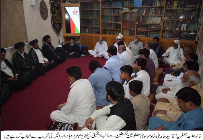 On the call of Quaid-e-Millat Jafaria Agha Syed Hamid Ali Shah Moosavi, Israel Murdabad Day was observed to express solidarity with Palestinians |
