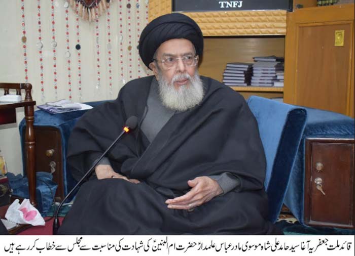 ISLAMABAD, January 18: The Patron-in-Chief of the Supreme Shia Ulema Board Quaid-i-Millat Jafariya Agha Syed Hamid Ali Shah Moosavi has said that the launch of National Security Policy is a welcome step, however, there is need to derive consensus on it by presenting it in the Parliament. The demand for national reconciliation should be fulfilled by taking all parties into confidence on this policy that guarantees Pakistan’s future; any differences on the National Policy would strengthen the enemy. We have rejected the uniform curriculum through which curriculum based of differences has been imposed in place of class-conscientious curriculum through which nation is being thrown into a new test and trial. It is insulting for the Islamic World that Muslim countries are looking towards Zionists for resolution of their mutual issues. Muslim Ummah should unite otherwise the sovereignty of every country would remain under threat. The loyalty lesson preached by Hazrat Ummul Baneen (S.A.) guarantees the sovereignty of the religion and the motherland. The personality of Hazrat Ummul Baneen (S.A.) the beacon of light for love to Risalat (SAAW) and Ahle Bait (A.S.) in their mutual affairs. These views were expressed by him while addressing the Ulema and Azadaran on the occasion of concluding day of Ayyam Madar-e-Abbas Alamdar (A.S.) marking the Shahadat of Hazrat Ummul Baneen (S.A.). Agha Moosavi said that the new curriculum sparked such discussions that will give rise to separatism that may weaken the internal security. He said the Prime Minister should take action against those who have prepared sectarian curriculum instead of uniform curriculum. He said educational curriculum should be a template of converting the generations according to the demands of the future but if this template is made controversial then no one can stop the emergence of constant conflicts. He said our beloved motherland Pakistan is surrounded by enemies and thus cannot bear internal conflicts and divisions. The TNFJ chief said that Hazrat Ummul Baneen (S.A.) is one of the most prominent personalities in the history of Islam who achieved mirage in fulfilling the demands for love to Ahle Bait (A.S.) and the Ajr-e-Risalat (SAAW). She not only fulfilled the norms of love with the Prophethood (SAAW) and Ahle Bait (A.S.) but also taught her children along with becoming the symbol of selflessness and loyalty, he said adding that her four sons kissed Shahadat in Karbala in support of Imam Hussain (A.S.) but she preferred to mourn Imam Hussain (A.S.), the grandson of the Prophet (SAAW) instead of mourning her children. Agha Moosavi said that as long as Hazrat Ummul Baneen (S.A.) remained alive, she would remember the sufferings of Karbala and would go to Jannat-ul-Baqi and narrate the oppression of Imam Hussain (AS) so that the remembrance of the Shuhada-e-Karbala would remain alive forever. Through her speeches, elegies and poems, she exposed the oppression of the Shuhada-e-Karbala to the world. The Quaid-i-Millat Jafariya Agha Syed Hamid Ali Shah Moosavi expressed his determination that no sacrifice will be spared for the unity of the Islamic World and for the security of our beloved motherland Pakistan. |