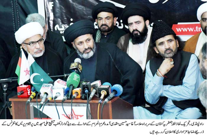 The president of the Tehreek Nafaz e Fiqh e Jafariya, Allama Hussain Muqadasi announced 14 - points code of Azadari for Muharram ul Harram