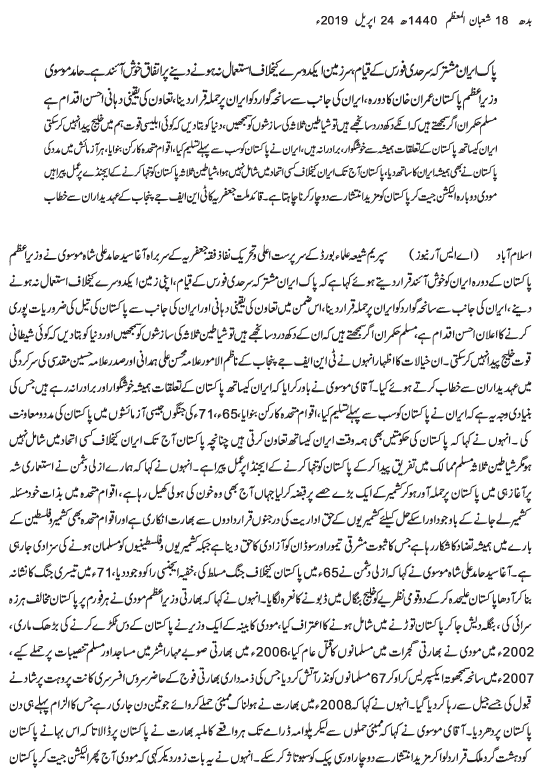 Urdu News 24 April 2019