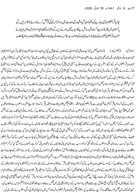 Urdu News 30 July  2020