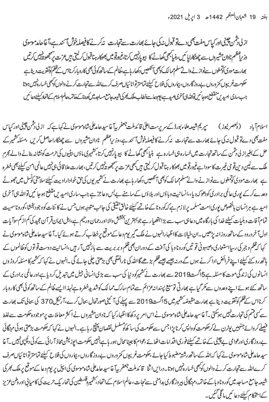 Urdu News 3 April 2021