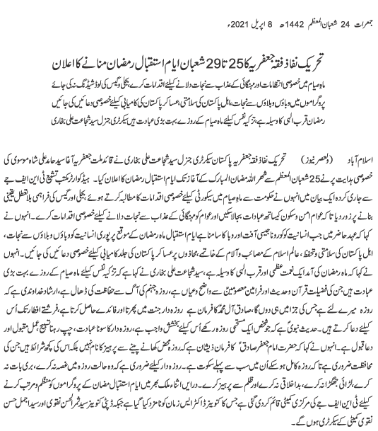 Urdu News 8 April 2021