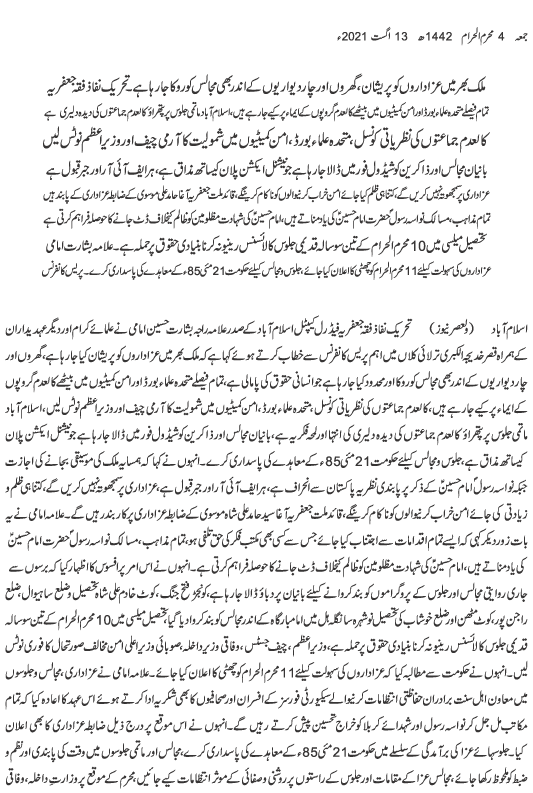 Urdu News 13 August 2021