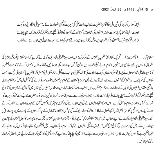 TNFJ UK    ASR NEWS    ENGLISH NEWS    URDU NEWS    JOIN TNFJ    ANNOUNCEMENTS    QUAID'S MESSAGES    CONTACT TNFJ UK
