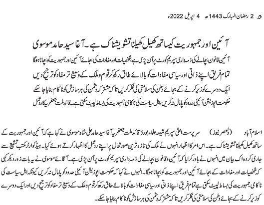 Urdu News 4 April 2022