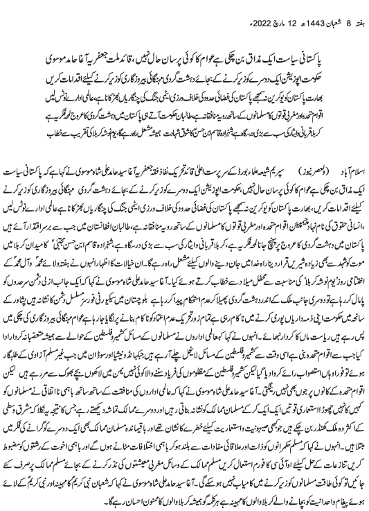 TNFJ UK    ASR NEWS    ENGLISH NEWS    URDU NEWS    JOIN TNFJ    ANNOUNCEMENTS    QUAID'S MESSAGES    CONTACT TNFJ UK