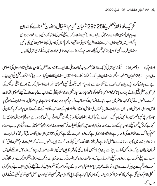 Urdu News 26 March 2022