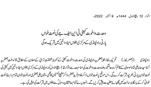 TNFJ UK    ASR NEWS    ENGLISH NEWS    URDU NEWS    JOIN TNFJ    ANNOUNCEMENTS    QUAID'S MESSAGES    CONTACT TNFJ UK