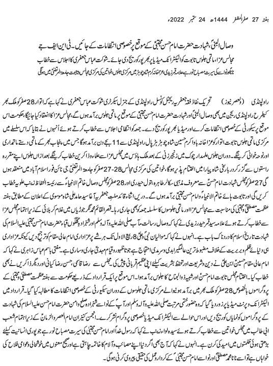 Urdu News 24  September 2022