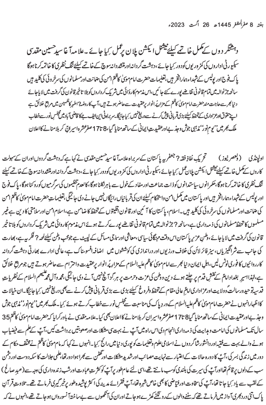 Urdu News 26 August 2023