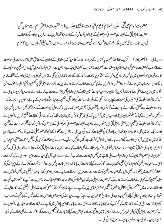 Urdu News  27 January 2023