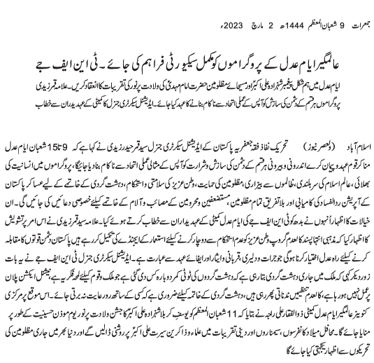 TNFJ UK    ASR NEWS    ENGLISH NEWS    URDU NEWS    JOIN TNFJ    ANNOUNCEMENTS    QUAID'S MESSAGES    CONTACT TNFJ UK