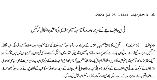 TNFJ UK    ASR NEWS    ENGLISH NEWS    URDU NEWS    JOIN TNFJ    ANNOUNCEMENTS    QUAID'S MESSAGES    CONTACT TNFJ UK