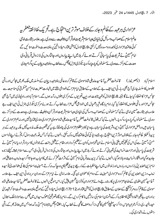 Urdu News 24 September 2023