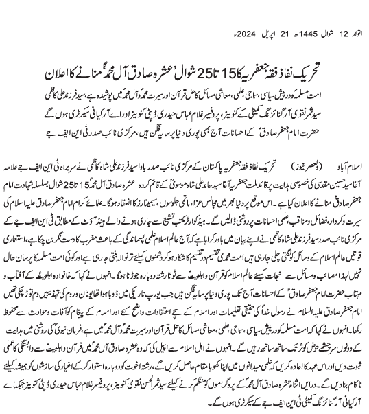Urdu News  21 April 2024