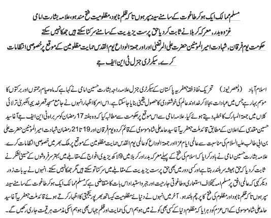 TNFJ UK    ASR NEWS    ENGLISH NEWS    URDU NEWS    JOIN TNFJ    ANNOUNCEMENTS    QUAID'S MESSAGES    CONTACT TNFJ UK