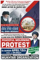 | RAWALPINDI, April 12: Mukhtar Organization is holding peaceful protest outside Press Club Islamabad on Sunday to mark Ashra e Sadiq e Aale Mohammad (AS) | ||