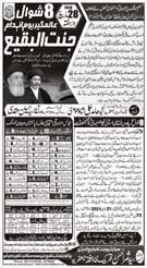 RAWALPINDI, April 17: The Tehreek Nafaz e Fiqh e Jafariya announced the observation of the Youme Nighebaan e Radalat on 29 Shawal and the Youme azmate Niswaan on 1st Zeeqaad |