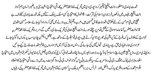 RAWALPINDI, March 30: Extremism is not acceptable; former glory of Jannat Al Baqi must be restored; world wide peaceful protests of the Tehreek Nafaz e Fiqh e Jafariya held; unified voice of all classes |